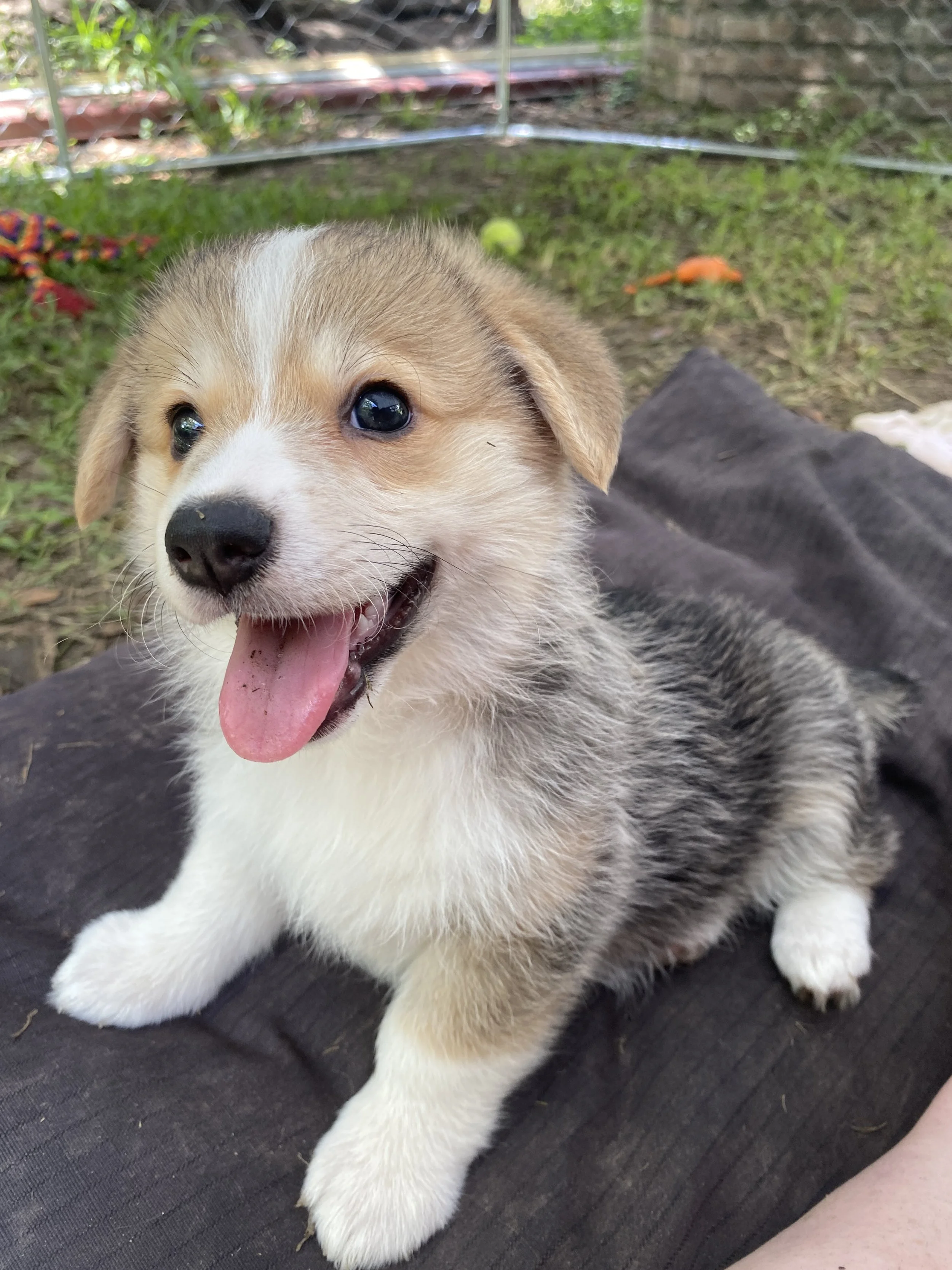 6 female puppies, 5 still available, all tri-colour, 3 have long tails and 3 have a half tails.